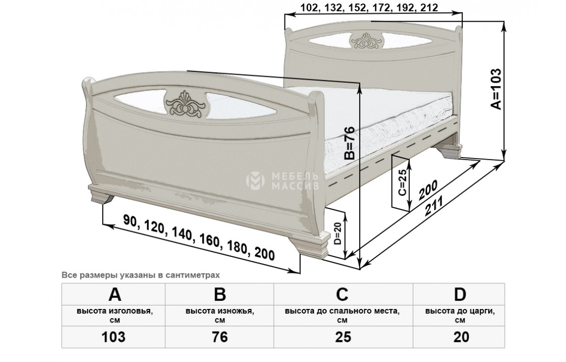 Кровать Эльза имеет две идентичные спинки, отличающиеся аккуратной изогнутостью, декоративными углублениями и цветочными узорами. Изделие, которое можно купить по специальной цене в нашем интернет-магазине, оснащено устойчивыми ножками, защищающими напольное покрытие от повреждений. Осуществляется доставка на дом по Волгодонску и Ростовской области .| Размер | Цена | |