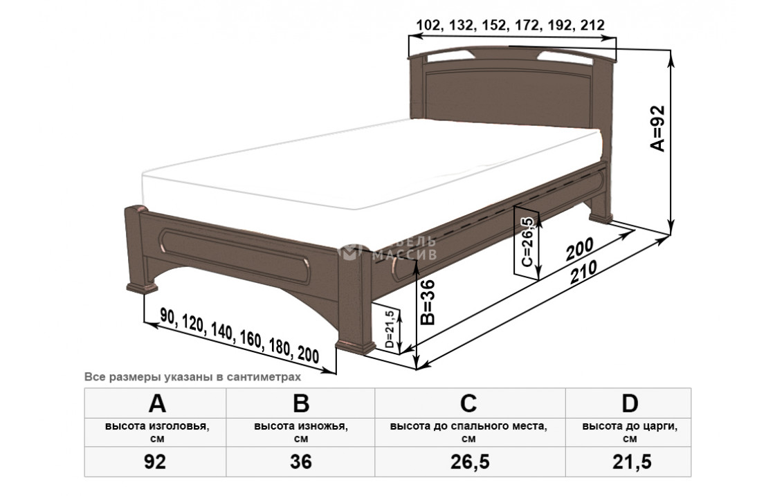Прочная кровать Лаура сделана из экологически чистого древесного массива. Модель имеет чуть изогнутое изголовье с двумя продолговатыми отверстиями и крепкий каркас с устойчивыми ножками. Изделие, которое можно купить по выгодной цене в нашем интернет-магазине, представлено в различных комплектациях. Осуществляется доставка на дом по Волгодонску и Ростовской области .| Размер | Цена | |