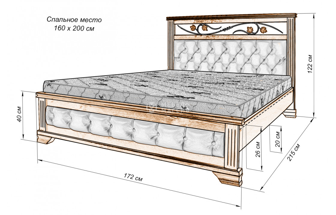 Кровать Лозанна из массива. Осуществляется доставка на дом по Волгодонску и Ростовской области .| Размер | Цена | |