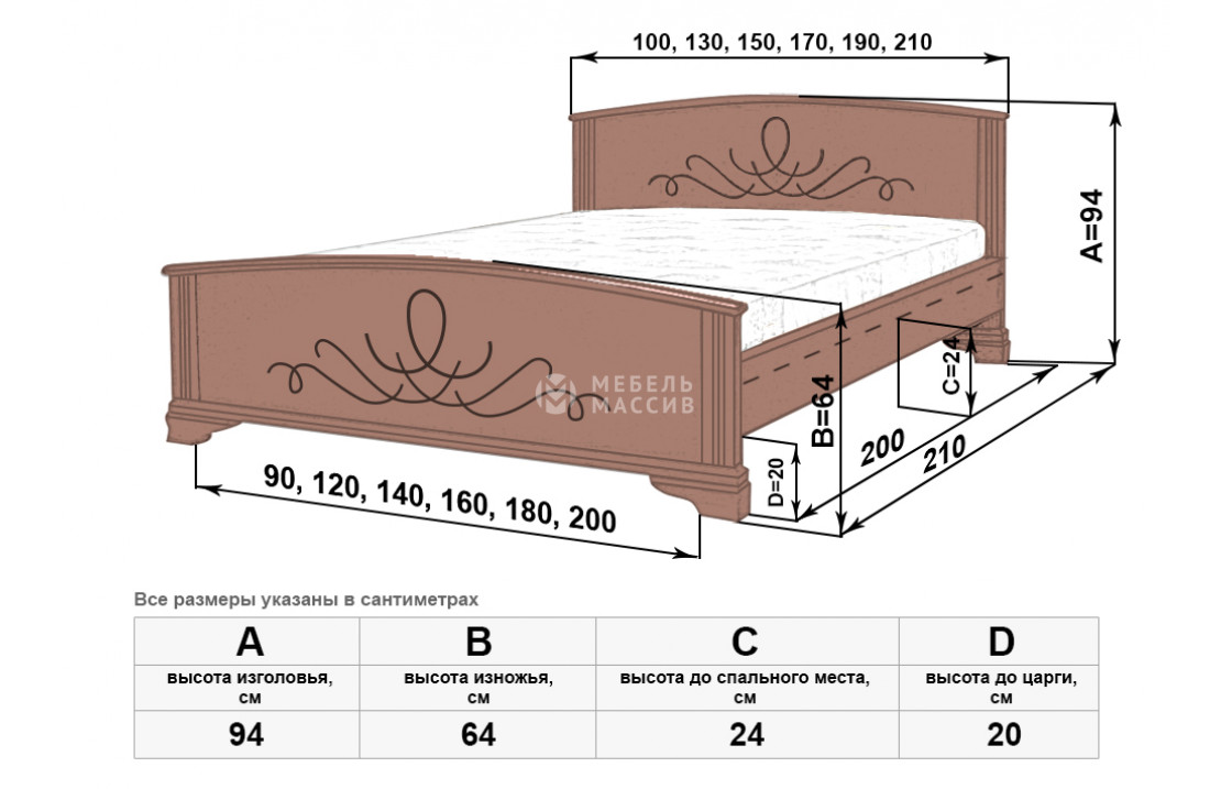 Прочная кровать Нова изготовлена из экологически чистого древесного массива. Модель имеет украшенные резьбой сплошные спинки, плавно переходящие в устойчивые ножки для защиты напольного покрытия. Изделие, которое можно купить в нашем интернет-магазине по демократичной цене, покрыто первоклассным лаком. Осуществляется доставка на дом по Волгодонску и Ростовской области .| Размер | Цена | |